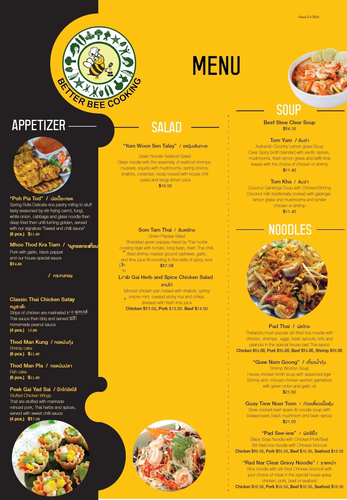 Better Bee Cooking Authentic Thai Food License Dine in or Takeout